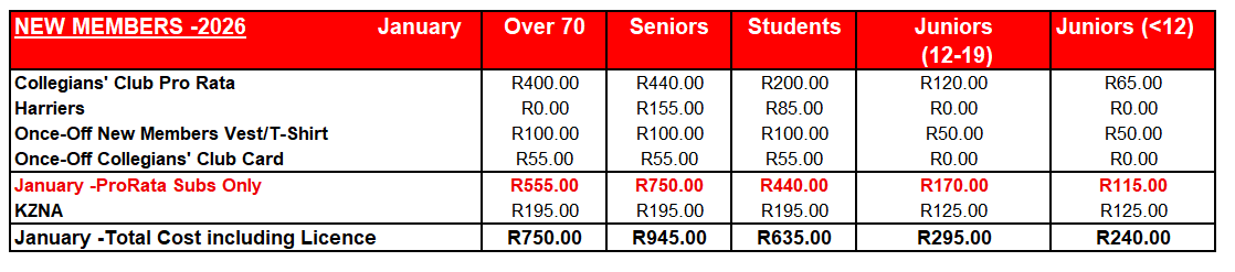 - Collegians Harriers- New Members -January 2026 Fees and ASA Licence Costs